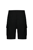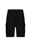 Casual shorts with functional cargo pockets and drawstring waist. Regular fit. Minimalistic logo detail near the waistband. Available in a solid black color. Ideal for pairing with t-shirts or casual shirts. See photos for additional features.