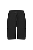 Sleek black shorts with a clean, minimalist design. Regular fit with an elastic waistband and adjustable drawstring for personalized comfort. Features multiple pockets, including side cargo pockets for practical storage. Discreet brand logo near the waistband. Simple detailing for versatile style.