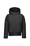 Bomber jacket designed by AIRFORCE. Features a sleek, minimalist aesthetic with a focus on practical details. Includes a hood for additional coverage and protection. The jacket's tailored fit and ribbed cuffs lend it a classic silhouette. Details include side pockets with secure closures. Finished with the AIRFORCE logo patch on the sleeve.