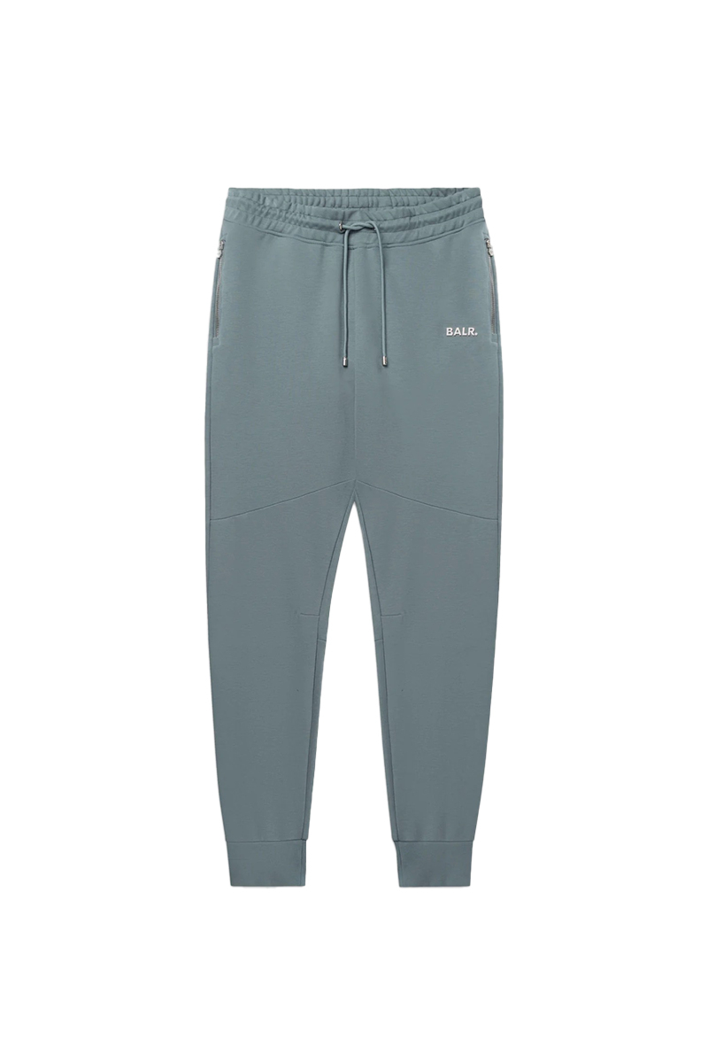 Jogging pants with a relaxed fit featuring an adjustable drawstring waist. Two side pockets with zipper closures and one back pocket. Elastic cuffs at the ankles. Subtle BALR. logo printed on the leg.
