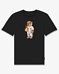 Classic black T-shirt with a playful front print featuring a bear in casual attire. Regular fit with a crew neckline and short sleeves. Small woven label at side seam. Offers a minimalistic look from the back.