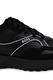 These sneakers from HUGO BOSS feature a sleek, contemporary design. The shoes offer a classic lace-up closure along with a durable, textured sole. Subtle branding appears on the side panel and heel. The blend of smooth and suede finish enhances the style. A padded ankle collar contributes to a comfortable wear.
