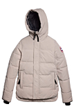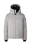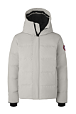The Canada Goose Macmillan Parka features a modern silhouette with a quilted design for added insulation. Adjustable hood with a built-in brim offers extra weather protection. The jacket includes fleece-lined handwarmer pockets, and a secure inner pocket for essentials. Ribbed cuffs provide snug comfort. The Canada Goose logo is prominently displayed on the sleeve for brand recognition.