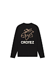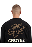 Long sleeve T-shirt with classic round neck design. Features bold flower graphic and CROYEZ logo on chest and back. Standard fit. Available in black. Ideal for pairing with jeans or joggers for a versatile look.