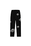 Color: black with white floral accents. Pairs well with casual tops or hoodies for a relaxed look.