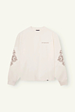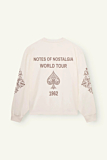 Relaxed fit T-shirt featuring detailed sleeve patterns and a crew neckline. Features a subtle "DONT WASTE CULTURE" print on the chest. The back showcases a bold "NOTES OF NOSTALGIA WORLD TOUR 1962" graphic. Long sleeves with ornamental designs on the forearms. Ribbed cuffs ensure a comfortable fit.