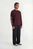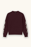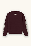 Relaxed fit sweater featuring brand logo along the sleeves. Ribbed crew neckline, cuffs, and hem. Rich bordeaux color adds depth and uniqueness. Ideal for layering over tees or under jackets. Pair with casual trousers or jeans for a versatile look.