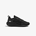 Sleek sneakers with a dynamic design, featuring a distinctive Lacoste logo on the side. Secure lace-up fastening. Bold black colorway with subtle mesh detailing for breathability. Pull tab at the heel for easy on and off. Sturdy rubber sole offers grip and durability. Ideal for versatile style, pairing effortlessly with casual or sporty outfits.