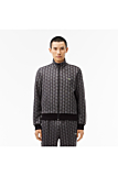 Jogging top with classic cut and all-over geometric print. Features a full zip closure and a stand collar for added style. Embroidered Lacoste logo on the chest. Contrast stripes on the sleeves for an athletic touch. Finished with ribbed cuffs and hem for a snug feel.