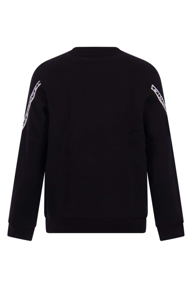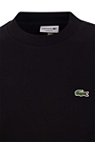 Classic black sweater with a minimalist design. Features a relaxed fit with ribbed crewneck and cuffs. Characteristic Lacoste logo embroidered on the chest. Lacoste branding runs along the length of each sleeve, providing a subtle detail. Ideal for layering or standalone wear.