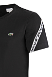 Regular-fit T-shirt featuring short sleeves and a crew neckline. Iconic Lacoste logo embroidered on the chest. Distinctive branded taping on the sleeves. Available in black. Suitable for casual wear.