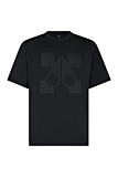 T-shirt with a regular fit. Features a round neckline and short sleeves. Large subtle textured logo print on the chest. Solid black color, enhancing the minimalist design.