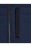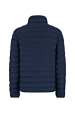 Quilted jacket with a sleek design. Features a high collar and full-length zipper. Two zippered pockets on the front for secure storage. Includes a decorative strip with ring detail on the chest. Elastic cuffs and hem for a snug fit. Color: deep blue. Pair easily with chinos or joggers.
