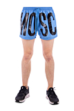 Swim shorts in a striking light blue hue. Featuring an elastic waistband with an adjustable drawstring. Bold, large print logo detail on the front and back. Designed for easy movement and comfort at the beach or poolside.