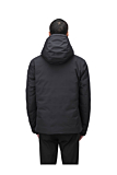 Classic jacket in a sleek, black design. Standard fit with adjustable hood. Front zip closure with two zip pockets for secure storage. Discreet brand logo on sleeve. Elastic cuffs for a snug fit.
