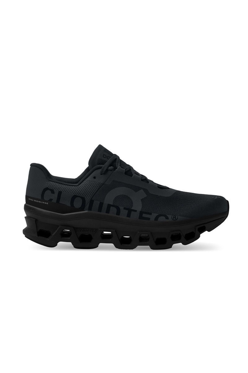 On Running Cloudmonster All Black High-performance sneakers featuring a sleek, all-black design. Equipped with advanced CloudTec® cushioning for optimal comfort and support. Lace-up closure and breathable upper ensure a secure fit. Designed with a rugged sole for enhanced grip and durability. Subtle brand detailing enhances the clean, modern look.