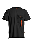 Casual T-shirt featuring a regular fit and a crew neckline. Designed with a distinct black color. Includes a functional flap pocket on the chest, equipped with a zipper and decorative pull tag that bears the Parajumpers branding. Subtle logo detail embroidered on the pocket.