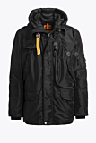 The Parajumpers Right Hand-M jacket offers a functional design suitable for diverse conditions. It features a high collar with an adjustable hood, enhancing protection against the elements. The jacket includes multiple pockets, including a large front pocket with a secure closure and convenient side pockets. A distinctive yellow strap detail adds a touch of contrast and functionality to the overall design. The hem includes an adjustable drawstring for a customized fit, while ribbed cuffs ensure added comfort around the wrists. Subtle branding is present, maintaining understated elegance.