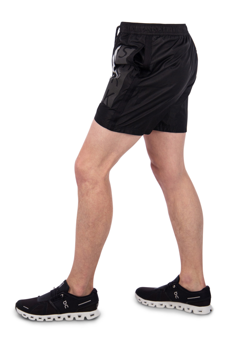 Swim shorts featuring an elastic waistband with adjustable drawstring. Regular fit. Side pockets and a back pocket with button closure for storage. Large Shark logo print on the left side adds a distinctive touch.
