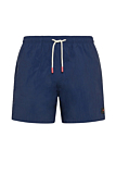 Swim shorts featuring an elasticated drawstring waistband for adjustable fit. Mid-thigh length. Side pockets and back patch pocket with flap. Discreet logo patch near the hem.