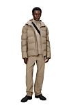 Puffer jacket with a classic silhouette in a neutral beige tone. Features a full-length zip closure and adjustable hood with drawstring. Two spacious side pockets with concealed zips. Designed with a clean, minimalistic look, suitable for layering. Quilted design provides dimension and texture.