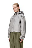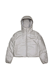 Lightweight short jacket with a streamlined silhouette. Fixed hood with adjustable drawstring. Front zip closure with concealed placket. Two side pockets with discreet zippers. Elasticated cuffs for a snug fit. Subtle branding on the sleeve. Quilted for added insulation.