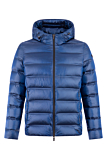 Puffer jacket with a sleek design. Slim fit. Features full-length zipper closure and adjustable hood. Two zippered side pockets for convenience. Discreet logo patch on the upper sleeve. Elastic hem and cuffs for a snug fit.