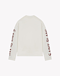 Long sleeve t-shirt with a minimalist design. Regular fit. Features a clean white base color with the Saint Blanc logo subtly printed on the chest. The sleeves are adorned with a larger, stylized Saint Blanc text print. Ribbed crew neckline and cuffs provide a classic finish.