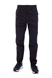 Sleek black trousers with a tailored fit by Stone Island. Features practical side and back pockets, ensuring effortless storage. Subtle logo badge on the left leg, highlighting brand identity. Button and zip closure. Adjustable drawstring at the hem for versatile styling. Color: black. Coordinates well with sneakers and casual tops.