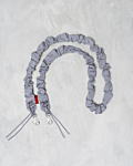 Stylish bungee strap accessory featuring adjustable length. Versatile design for use with various bags. Equipped with secure metal clasps for easy attachment. Made in a subtle grey shade that complements a wide range of items. Durable elastic material ensures flexibility and strength.