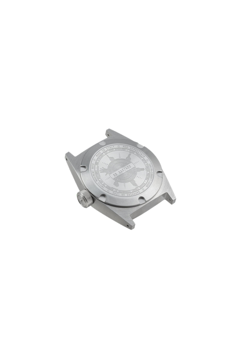 Exclusive watch limited to 400 pieces. The case is crafted from silver-tone metal. The movement features a black dial with luminous markers for optimal visibility. The robust crown offers reliable water resistance and durability. The watch is finished with a textured black strap for added grip. The limited edition is inscribed on the caseback.