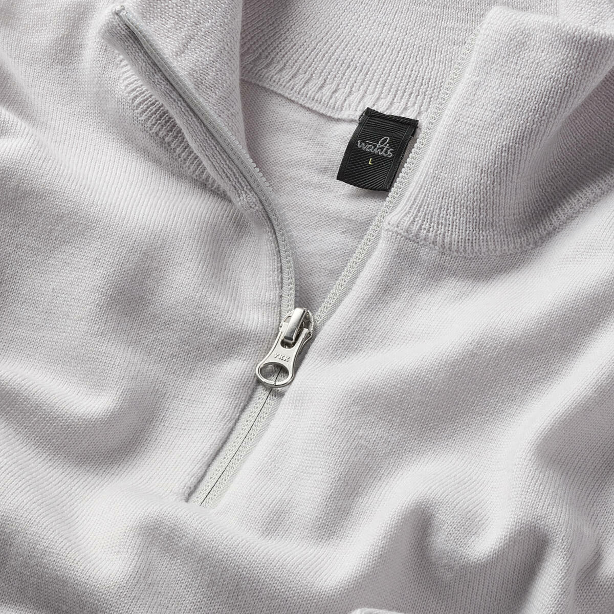 Versatile sweater with a half-zip design for adjustable coverage. Features ribbed cuffs and hem for a neat finish. Minimalistic WAHTS logo detailing on the lower hem. The light grey shade effortlessly pairs with various wardrobe staples.